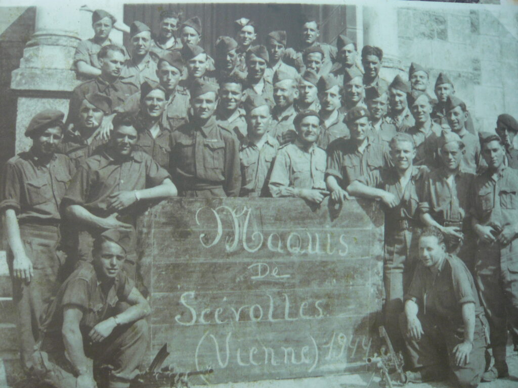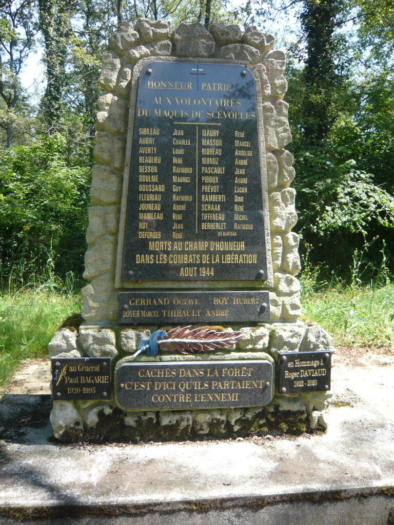Le 10 août, une réunion des chefs locaux de la Résistance à laquelle prend part un jeune étudiant juif venu de Saumur, René Mabileau, se tient à Monts-sur-Guesnes. Les armes et les munitions stockées à Dandésigny doivent être récupérées pour être distribuées aux combattants, et il est décidé de créer un maquis dans la forêt de Scévolles, située à proximité. Le lendemain, 5 hommes s’y installent sous les ordres de Mabileau, (« Le Ptit Rouquin »), mais celui-ci est tué par erreur le 15 août à la suite d’un mitraillage d’avions britanniques. Le commandement est ensuite assuré par Pierre Séchet (« capitaine Henry »). Les maquisards affluent par dizaines jusqu’à former un effectif de 800 hommes à la Libération avec les groupes satellites. Les parachutages d’armes s’intensifient, ce qui permet d’entraver l’avancée puis la retraite de l’ennemi : SS faits prisonniers du côté de Gennes – Les Rosiers (Maine-et-Loire), sabotage de la ligne de chemin de fer entre Châtellerault et Ingrandes, évasion de prisonniers nord-africains à Nouâtre (Indre-et-Loire), attaques de véhicules et de convois allemands, capture à Chaveignes (Indre-et-Loire) d’Allemands et de Russes incorporés, etc.