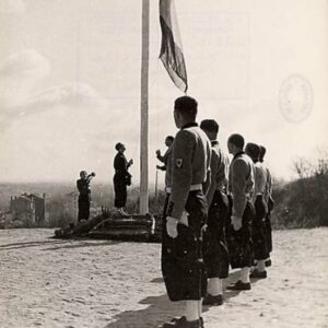 L’armée française est dissoute selon les conditions de l’armistice signé le 22 juin 1940. 10O OOO jeunes démobilisés sont ainsi disséminés en France et le premier souci de Vichy sera de les regrouper avec les autres jeunes de la nation dans une nouvelle structure répondant aux critères de l’ordre nouveau ; une jeunesse virile, formée à l’obéissance, au service du pouvoir, dans une instruction religieuse et paramilitaire.