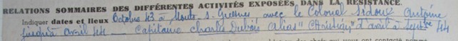 Par ailleurs, dans son dossier de demande de carte de Combattant volontaire de la Résistance (Archives départementales de la Vienne 1825 W 42), Charles Dubois précise : octobre 1943.